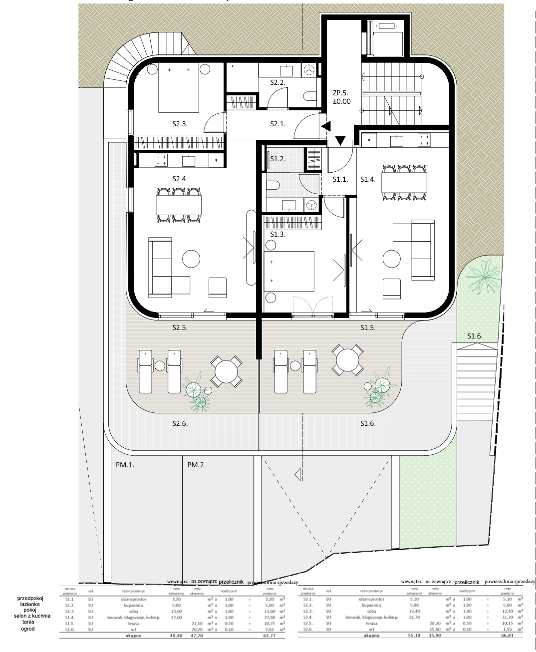 Mieszkania na najniższej kondygnacji posiadają ogródki.
